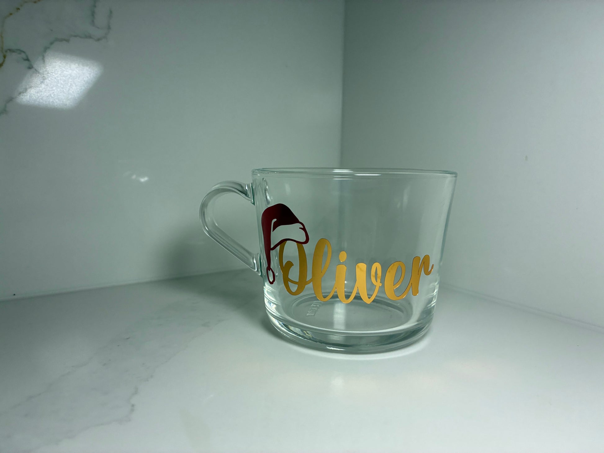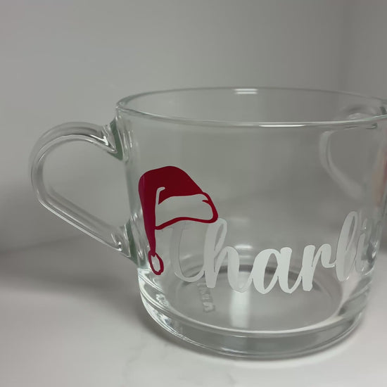 Make Christmas Eve extra magical with a personalised mug that's perfect for filling with hot chocolate! This 240ml glass mug features a cute Santa hat design and your child's name in festive lettering, making it an ideal addition to any Christmas Eve box. Perfect for enjoying a warm drink on a chilly winter night, this mug is sure to be loved by kids and become a special part of their holiday tradition.