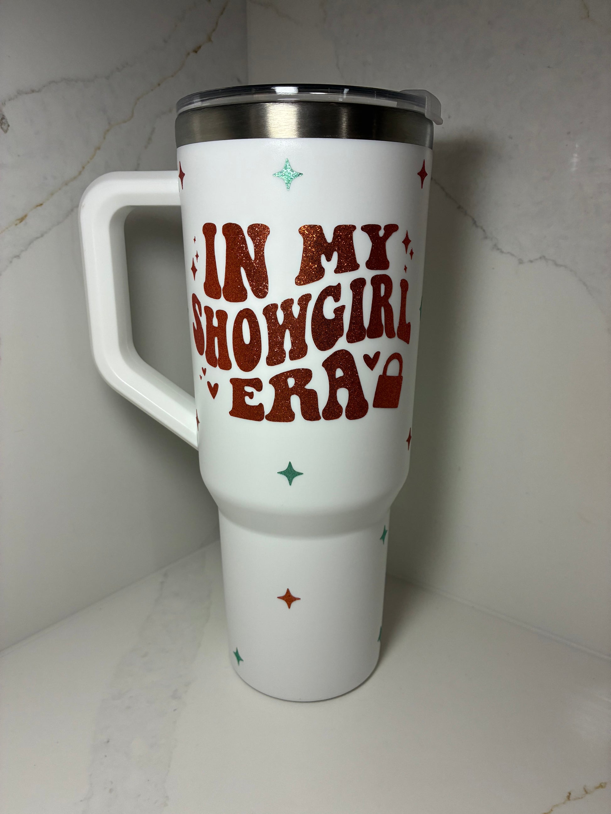 Step into your showgirl era with this fabulous 40oz tumbler — the perfect mix of glam and practicality! Whether you’re backstage, on the go, or simply enjoying a well-earned coffee, this statement cup keeps your drink just the way you like it – hot or cold for hours.